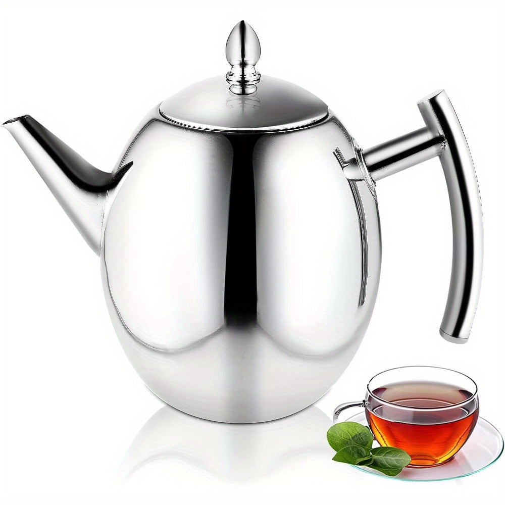Enjoy a perfect cup of tea anywhere with this 1.5L stainless steel teapot with infuser, designed for home, office, travel, or camping. Its wide-opening design allows for quick and easy filling, while the removable stainless steel filter ensures small tea leaves and particles are blocked, giving you a smooth, delicate brew. Even when the filter is removed, the lid fits securely, and it can be installed or disassembled as needed for easy cleaning.