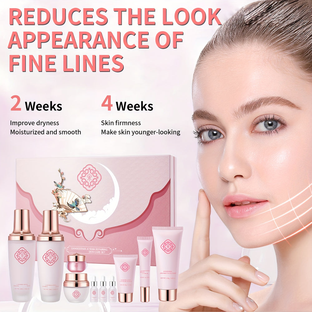 Treat your skin to complete care with the Anoderma 10-piece women’s skincare set by O’KADY. Powered by ganoderma (reishi mushroom) extract and hyaluronic acid, this collection deeply moisturizes, helps reduce the appearance of wrinkles, and supports firmer, smoother-looking skin. Glycerin enhances hydration while the balanced formula works gently on all skin types. Designed for daily use, this all-in-one set delivers long-lasting moisture, improved elasticity, and a refreshed complexion, making it an excellent choice for self-care or gifting.