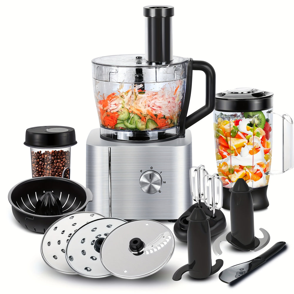 Upgrade your kitchen with this 11-in-1 Food Processor, a versatile powerhouse designed for effortless meal prep. Equipped with a 1100W motor and 3-speed settings plus pulse, it handles everything from chopping, blending, kneading, grinding, whisking, to juicing with ease.