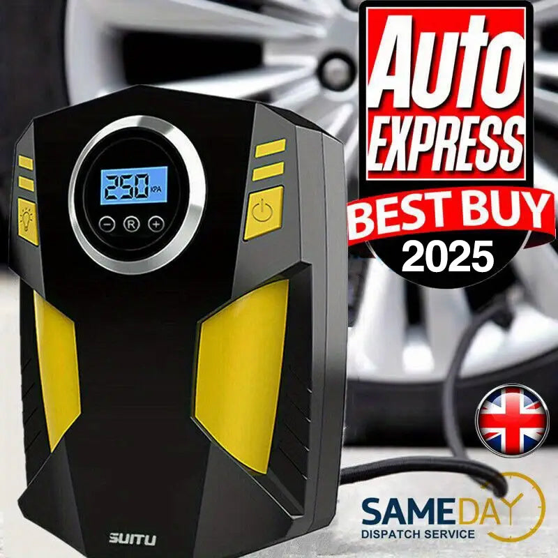 Keep your tires perfectly inflated with this compact and efficient digital tyre inflator. Featuring a powerful 150PSI electric pump, it delivers rapid air inflation for cars, motorcycles, bicycles, and even sports balls. The one-touch operation allows quick and effortless pumping, while the adjustable pressure setting ensures precise inflation.