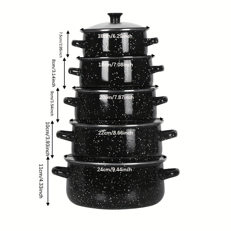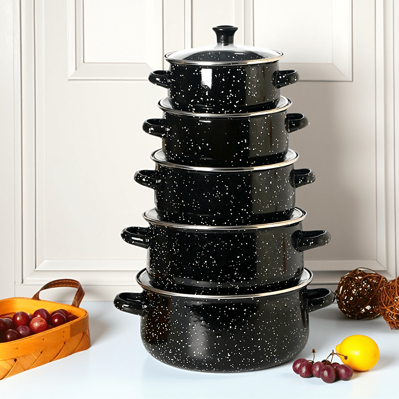 Upgrade your kitchen with this 5-Piece Premium Enamel Cookware Set, designed for everyday cooking and heavy-duty use in both home kitchens and restaurants. Crafted from high-quality enamel, these stock pots deliver fast, even heat distribution, making them perfect for soups, stews, boiling, and slow cooking.