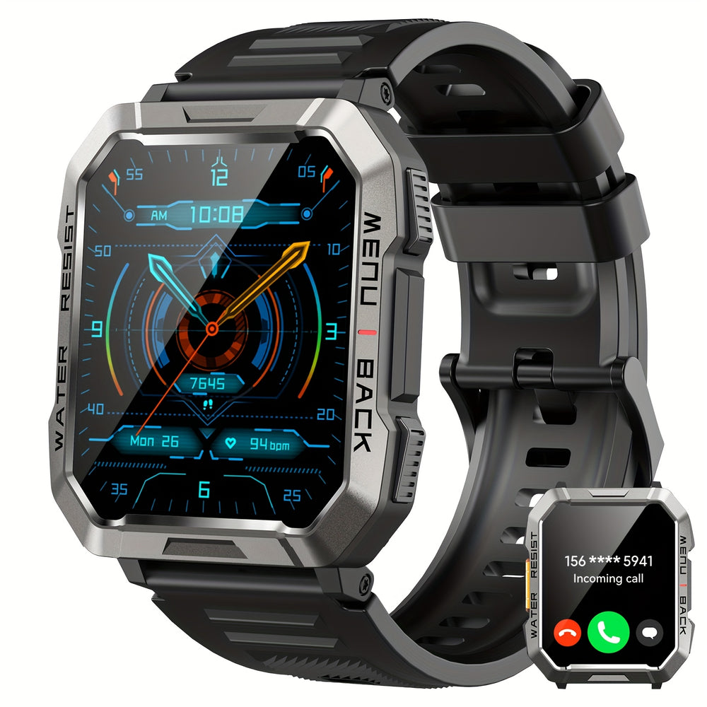 [Rugged Smart Watch ]The frame of the Smart Watch is made from a special aluminum alloy material, our Smart Watch for Men has undergone rigorous testing, including extreme temperature, low pressure, and dust resistan. This watch can withstand harsh environmental conditions, making it the perfect companion for outdoor adventures.