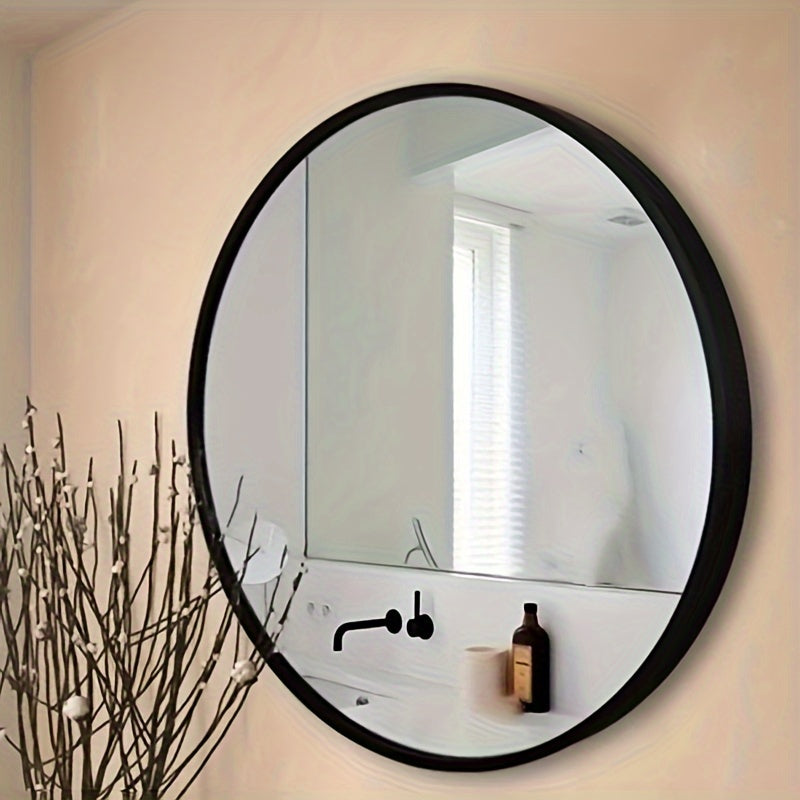 Elevate your home décor with this modern round wall mirror, designed to add style and functionality to any space. Measuring 15.75 inches, it features a durable aluminum frame and a sleek hanging design, making it perfect for bathrooms, bedrooms, living rooms, or entryways.