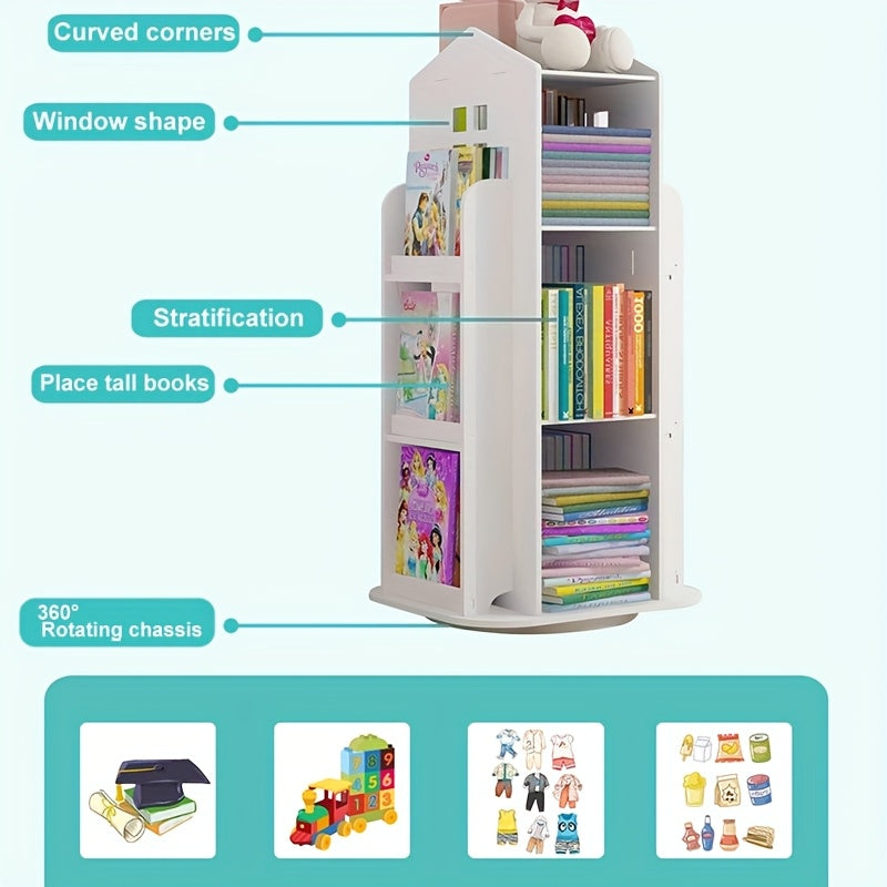 Maximize your storage and display space with this multi-layer 360° rotating bookshelf, designed in a creative castle shape. Perfect for bedrooms, living rooms, studies, or offices, each tier spins smoothly, giving easy access to books, décor, or collectibles while saving valuable floor space.