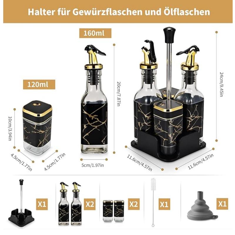 Crafted from food-grade glass, the containers are durable, waterproof, and moisture-resistant, and they do not absorb odors or flavors, preserving the purity of your spices and oils. The set is easy to clean, refill, and maintain, and the sturdy base keeps everything organized and reduces countertop clutter.