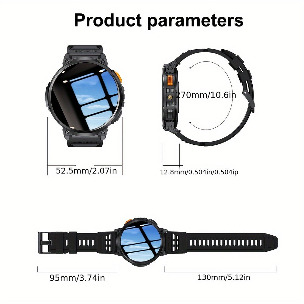 Equipped with a 730mAh rechargeable lithium polymer battery and USB charging, this watch provides long-lasting performance for daily use. With Wireless 5.0, you can make and answer calls directly from your wrist, while 100+ sports modes, a pedometer, weather forecast, and alarm clock keep you active and organized. The built-in LED flashlight adds practical utility for everyday scenarios.