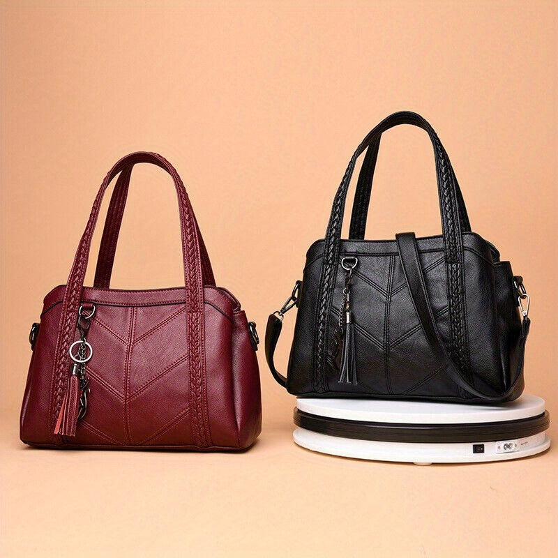 Elevate your style with this beautifully designed women’s handbag, perfect for casual outings or daily use. Made from soft PU with durable metal hardware, it feels smooth to the touch and is free from any unpleasant odors. Its solid color design is classy and elegant, attracting compliments wherever you go. The bag features multiple pockets and zippers, offering ample space for your phone, wallet, glasses, and other essentials. The adjustable shoulder strap ensures comfortable wear, while high-quality stitching and craftsmanship guarantee long-lasting use. Available in Red, Black, Blue, and Purple.